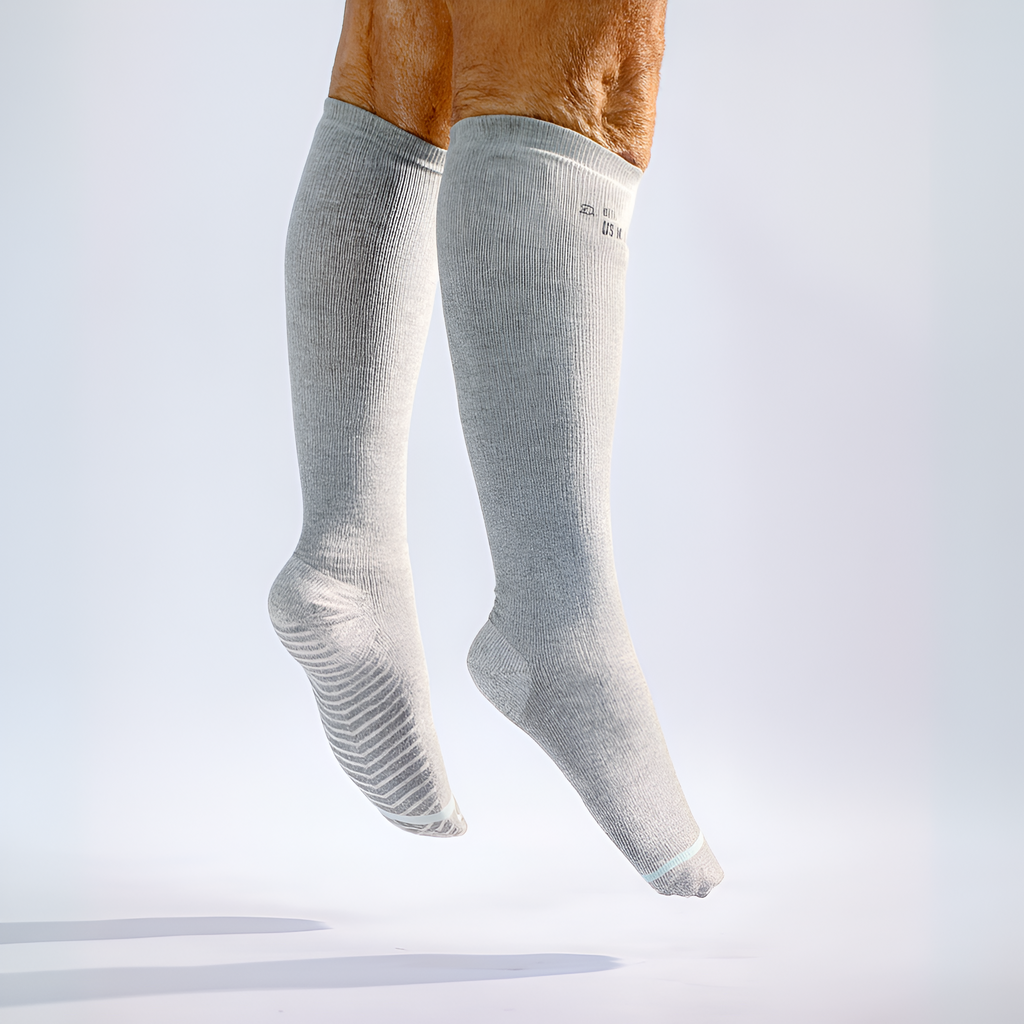SureStep™ socks use gentle 10–15 mmHg bamboo compression to support healthy blood flow and prevent fluid build-up in the legs. This helps reduce swelling caused by varicose veins, pregnancy, lymphedema, standing fatigue, and more. The result is lighter legs, improved comfort, and better rest, day or night.